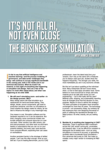 It’s fair to say that artificial intelligence andmachine learning—and the process modeling, IPgovernance, and data-center challenges theybring—will continue to occupy significant bandwidthin the coming year, both in the media and in ourtechnical discussions. What we mustn’t do,however, is lose sight of everything else happeningin simulation and design. Here are a few of thetopics I’m most often asked about, and what I seehappening as we enter 2026.