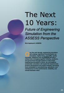 Over the next decade, engineering simulation will undergo significant transformation as simulation, digital twins, and AI/ML rapidly converge. Initiatives such as ASSESS will play acritical role in bringing together industry, academic, and government thought leaders to help shape engineering simulation’s future. As convergence accelerates, simulation will expand far beyond earlyproduct development and expert analysts, becoming more embedded in manufacturing, operations, andmaintenance to drive performance, reliability, and overall business value.