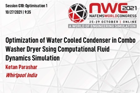 The washing machine has become an integral part of our urban daily life. Usually in western countries there is a separate washer and a dryer in the house. Nowadays customers prefer to have a combined product called as Combo which comprises washer and dryer. This leads to the challenge of managing the drying system in compact space. Year on year the expectation of the customers are raising in terms of the drying time and energy rating for running these machines. So it becomes of utmost importance to have a very efficient machine to dry the clothes with less time as well energy consumption should be low. In that regard, condenser play an important role in combo machines. The main function of condenser is to remove water from the humid air which comes from the clothing drum. So to improve the drying rate without affecting the energy consumption, it is always necessary to have maximum condenser efficiency. In combo washers and dryers generally water cooled condensers are used and since it is a combined unit, there is space constraint for placing the condenser. This project aims to predict early in the design cycle the performance of the water cooled condenser using Computational Fluid Dynamics (CFD) methodology. In this paper, heat transfer analysis is performed using a commercial CFD tool fluent in early stage. Trade off analysis done for different design parameters which can affect the performance of condenser like water flow rate, length, diameter, material of condenser tube, air flow rate and temperature. Critical thinking used through thought map and product map used to identify critical parameters. Virtual DOE used to analyze significant parameters and interaction of those parameters for maximizing the heat transfer rate across the air and condenser tube. Effect of these parameters over the pressure drop in the system is also analyzed to get the trade off between heat transfer and water side/air side pressure drop. In the second step, two phase analysis performed to understand the actual condensation phenomenon using the Eulerian wall film model for the baseline model. The work includes the simulation methodology for predicting the condensate rate by studying the different parameters like turbulence model, mesh method, solver parameter etc. This assessment shows the simulation prediction has a good correlation with the physical test results. Similar study performed for the best design evolved in the first step to understand the improvement in the condenser efficiency. The study encompasses developing a guideline for the simulation by identifying the optimum shape/design of the condenser unit in combo washer and dryer to improve the drying time.