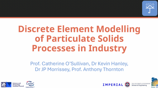 In this webinar, we will introduce the Discrete Element Method (DEM) and learn how it can be used to understand complex phenomena in particulate solids. We will provide some real-world examples highlighting how DEM can help optimise your particulate solids processes. We will also introduce the CCC-ParaSolS project (https://www.ccc-parasols.ed.ac.uk/) which is establishing a Collaborative Computational Community in Particulate Solids Simulations in the UK.